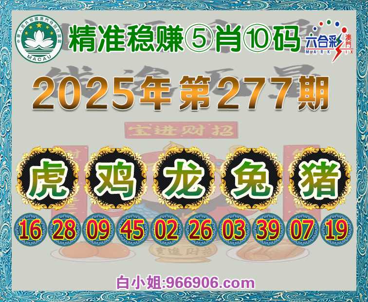 277期:【精准稳赚】 ♠️⑤肖⑩码♠️【虎鸡龙兔猪】开:虎16准