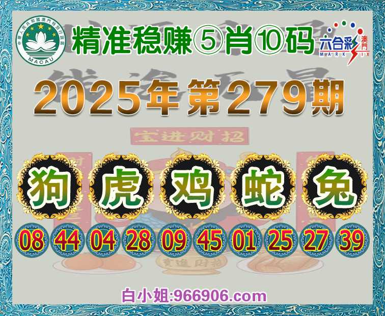 279期:【精准稳赚】 ♠️⑤肖⑩码♠️【狗虎鸡蛇兔】开:兔27准