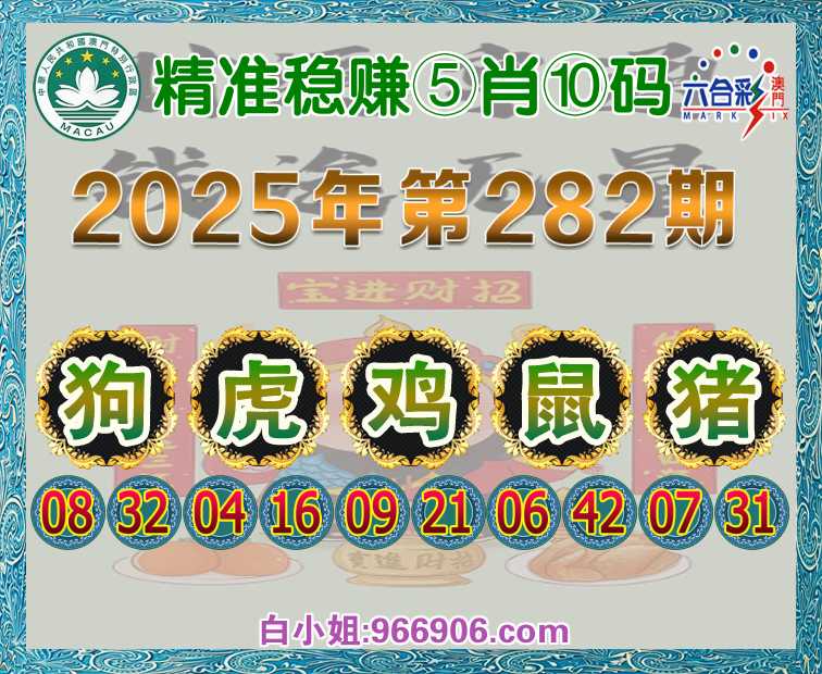 282期:【精准稳赚】 ♠️⑤肖⑩码♠️【狗虎鸡鼠猪】开:00准